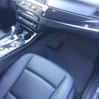 ЭВА — материал будущего. Полимерные коврики удерживают воду и грязь внутри ячеек так, что загрязнения не попадают на обувь и одежду даже на крутых виражах. Сами коврики EVA надежно закреплены на многоразовые липучки и подходят только для конкретного авто. У нас вы можете заказать автоковрики для BMW 5 (F10/F11) 2014 - 2017 в Калининграде с доставкой от производителя.